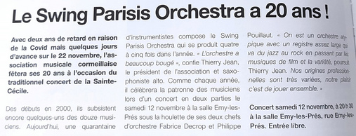 Le Secours Populaire de Méry-sur-Oise et la Mairie de Méry-sur-Oise invitent le SWING PARISIS ORCHESTRA de Cormeilles en Parisis et le choeur Gospel RYTHMN'VOICES de Cergy-Pontoise pour ce concert solidaire